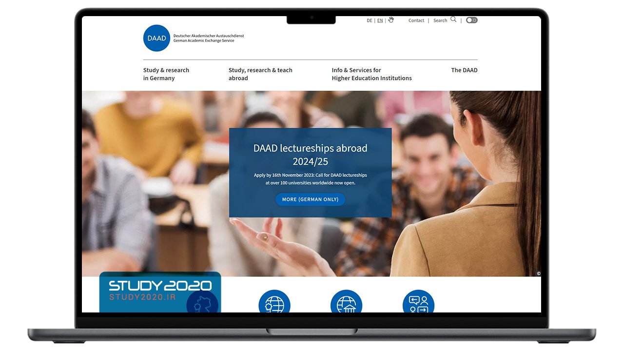 سایت «daad.de» که متعلق به مؤسسه مبادلات آکادمیک آلمان است، یک منبع مهم برای اطلاعات دانشجویان است. این سایت بهعنوان بزرگترین سازمان حمایتی کشور آلمان در حوزه همکاریهای دانشگاهی شناخته میشود.