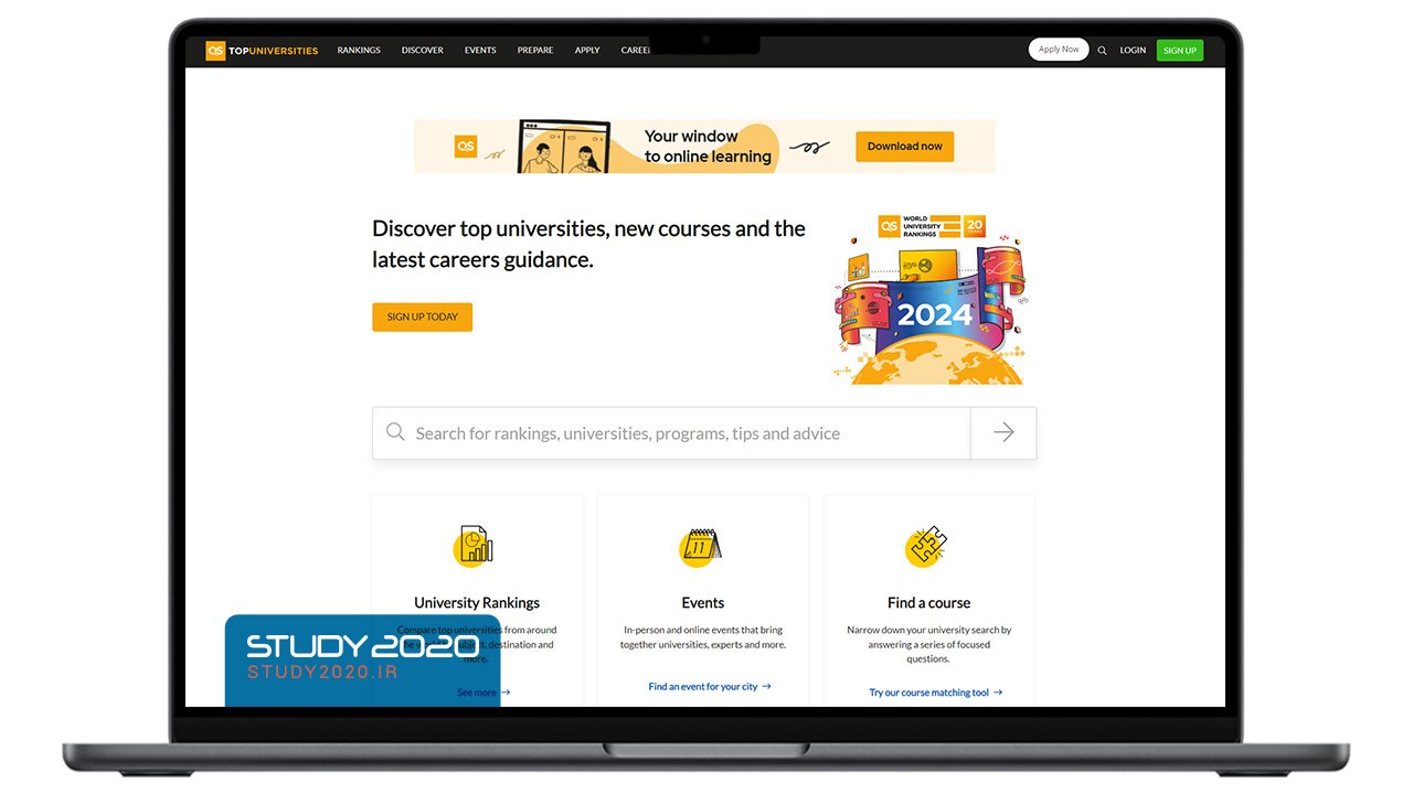 سایتtopuniversities.com بر اساس رتبهبندی QS World University Rankings اطلاعات مفیدی را درباره دانشگاههای برتر جهان در سال 2022 ارائه میکند. در این سایت، میتوانید رتبهبندیهای جهانی دانشگاهها را بر اساس شش شاخص کلیدی مشاهده کنید. همچنین، میتوانید دانشگاهها را با یکدیگر مقایسه کنید و جستجوی دانشگاهها را بر اساس موضوع، محل و برنامه تحصیلی مورد نظر خود انجام دهید.